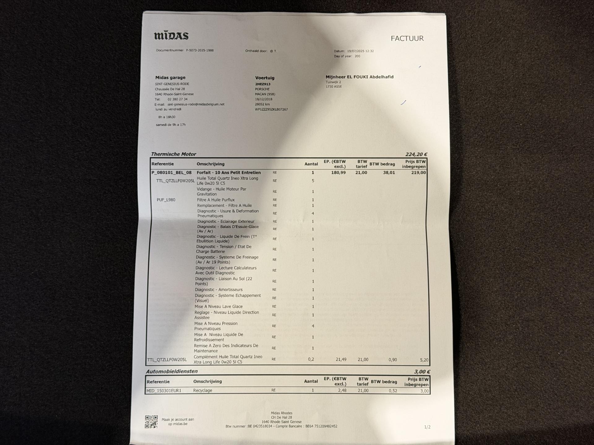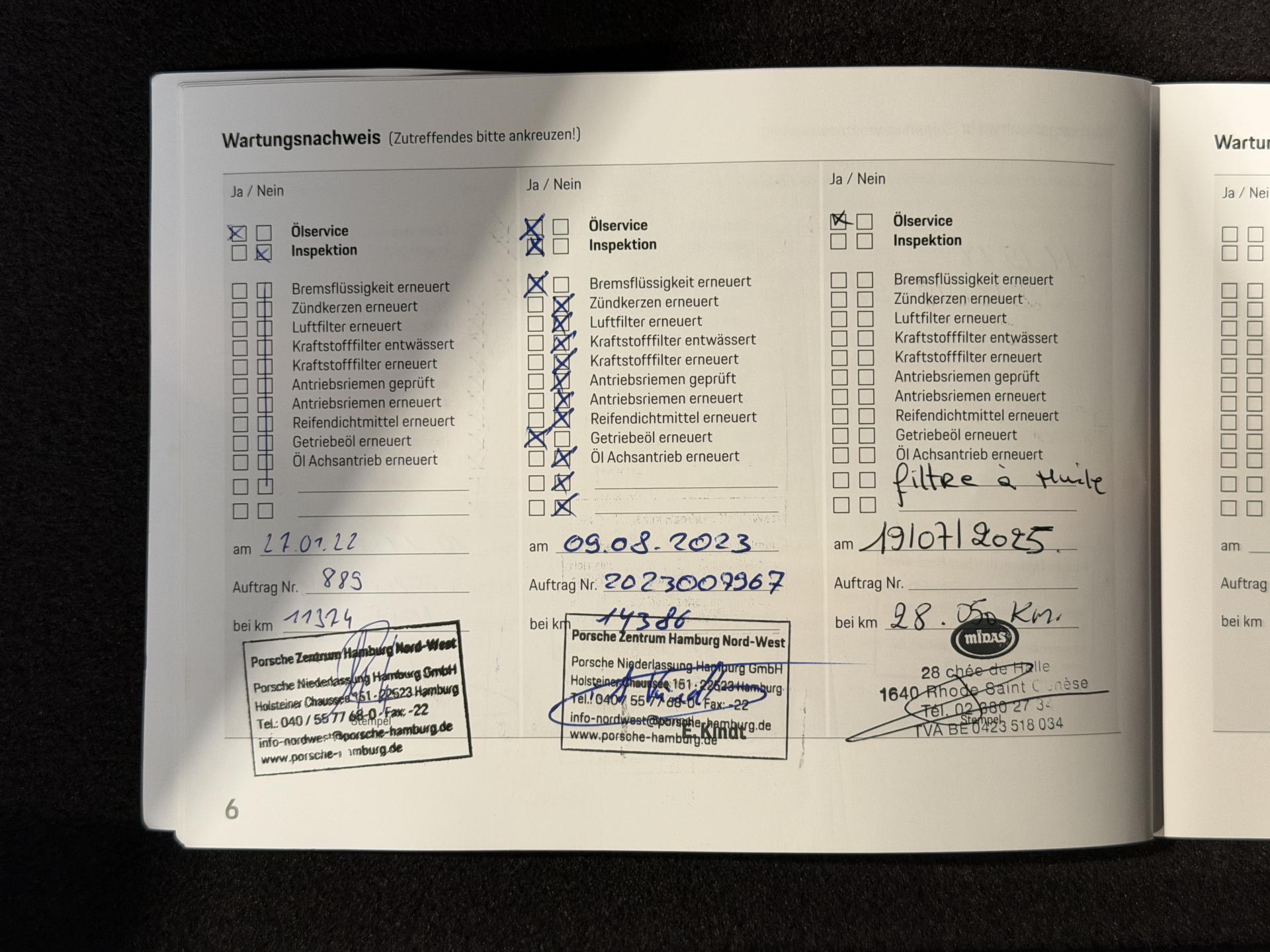- 1er entretien fait le 04/02/2020 à 6 025Km chez Porsche. ( Vidange moteur )