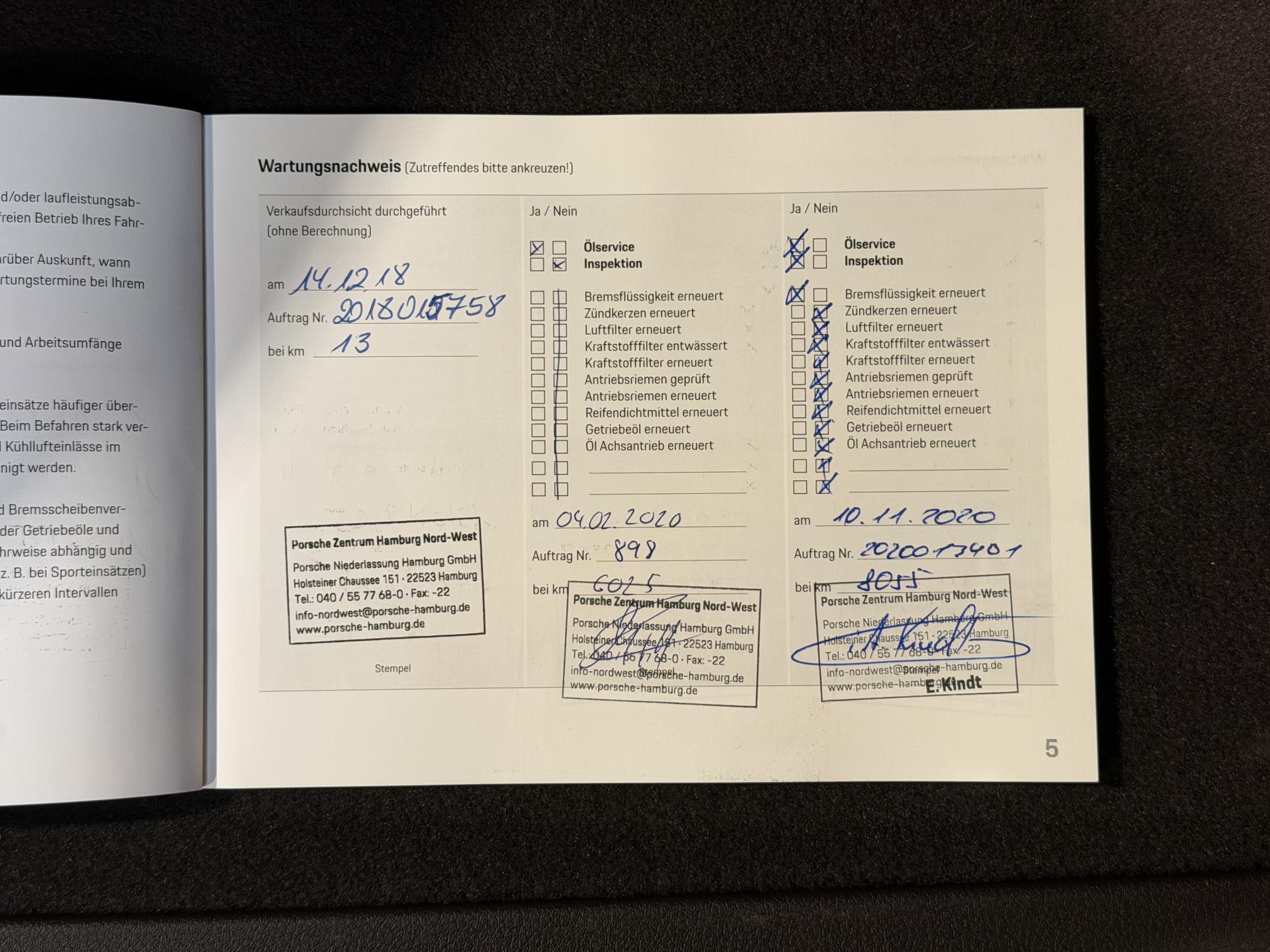 - 2ème entretien fait le 10/11/2020 à 8 055Km chez Porsche. ( Vidange moteur + liquide de frein )