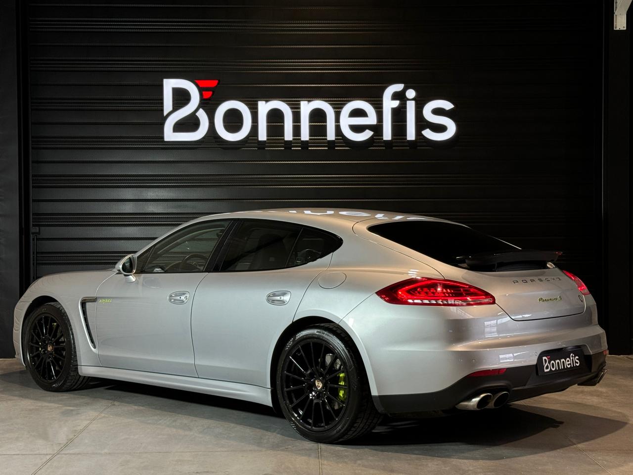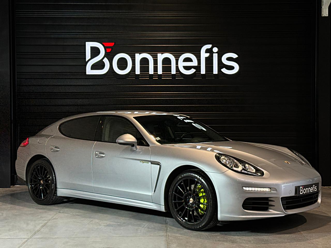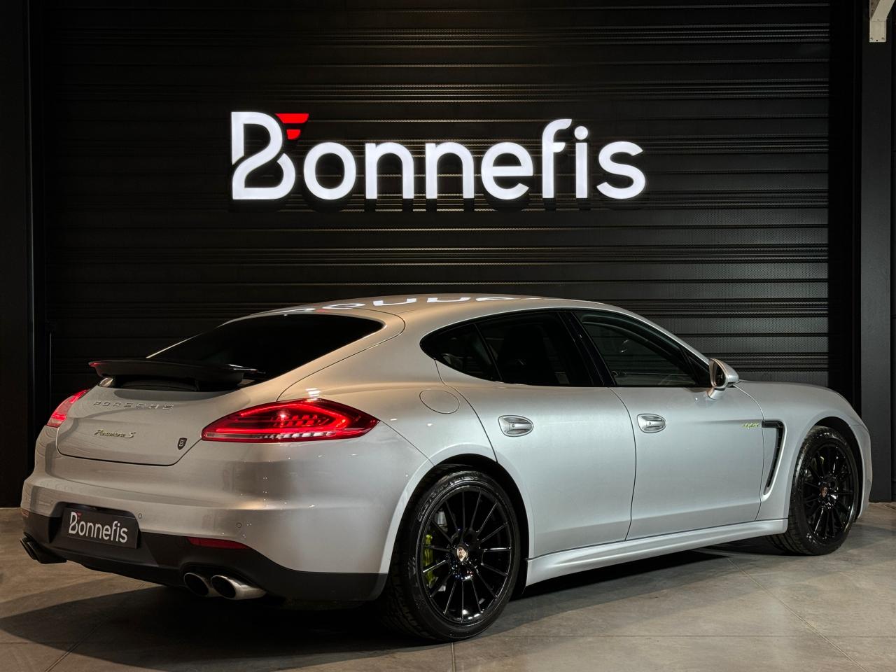 PORSCHE Panamera S Hybrid 3.0 V6 416 Ch BVA Tiptronic, extérieur gris métallisé ( Argent Rhodium métallisée ), intérieur tout cuir en noir ( 3 468 EUR ), 20 cv, 5 portes, première mise en circulation le 20/11/2013.