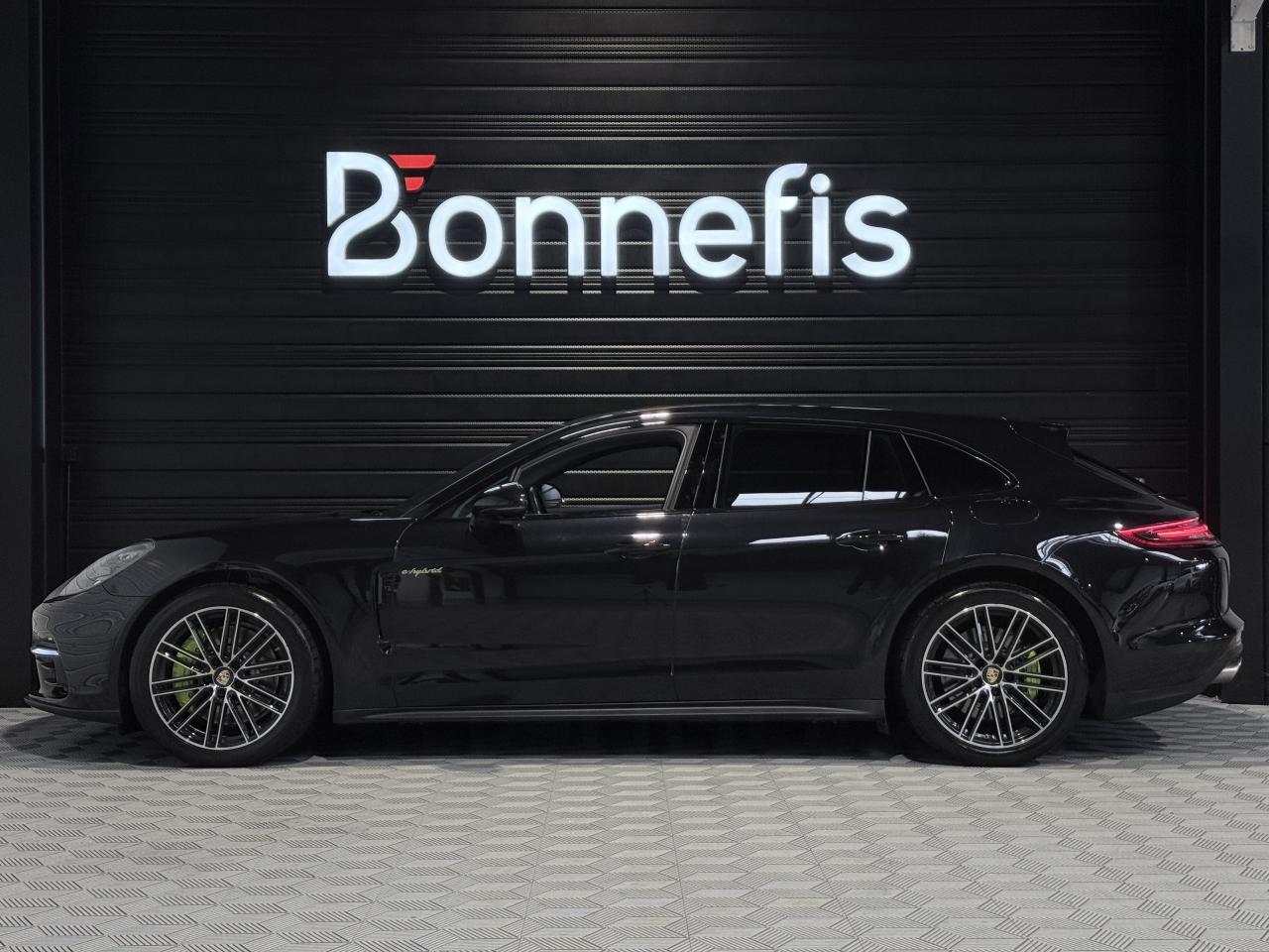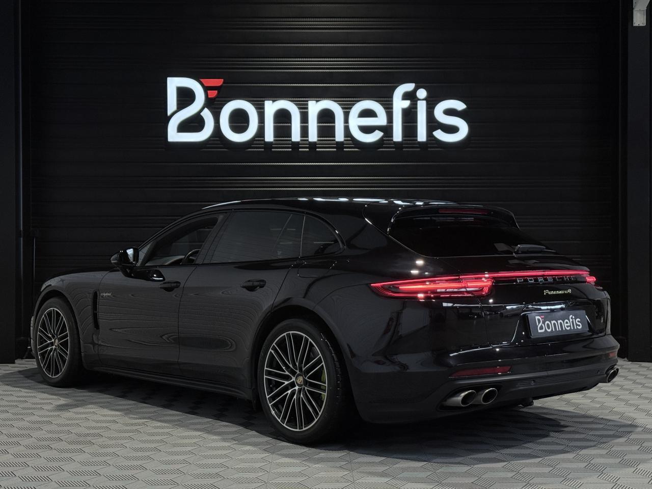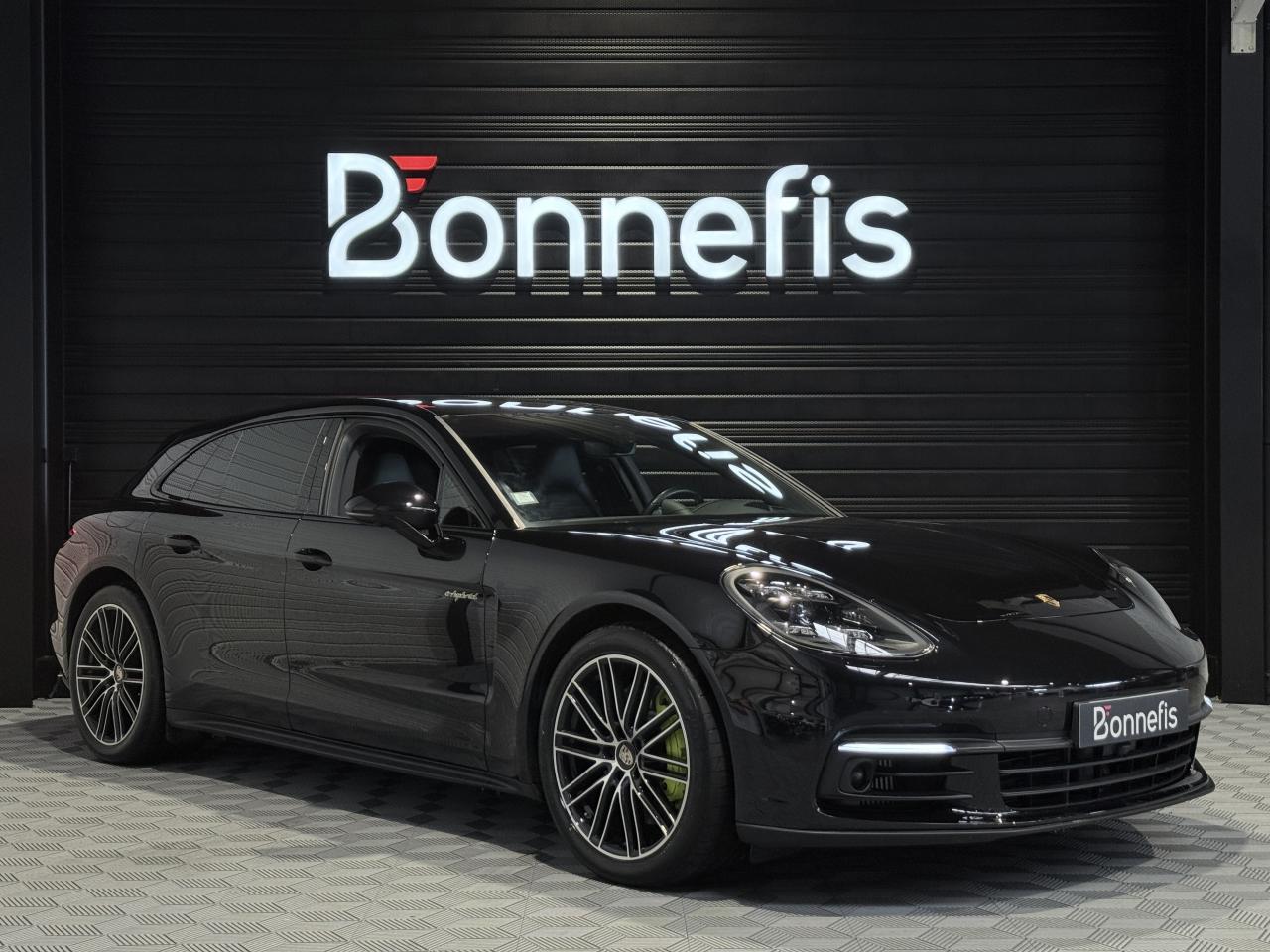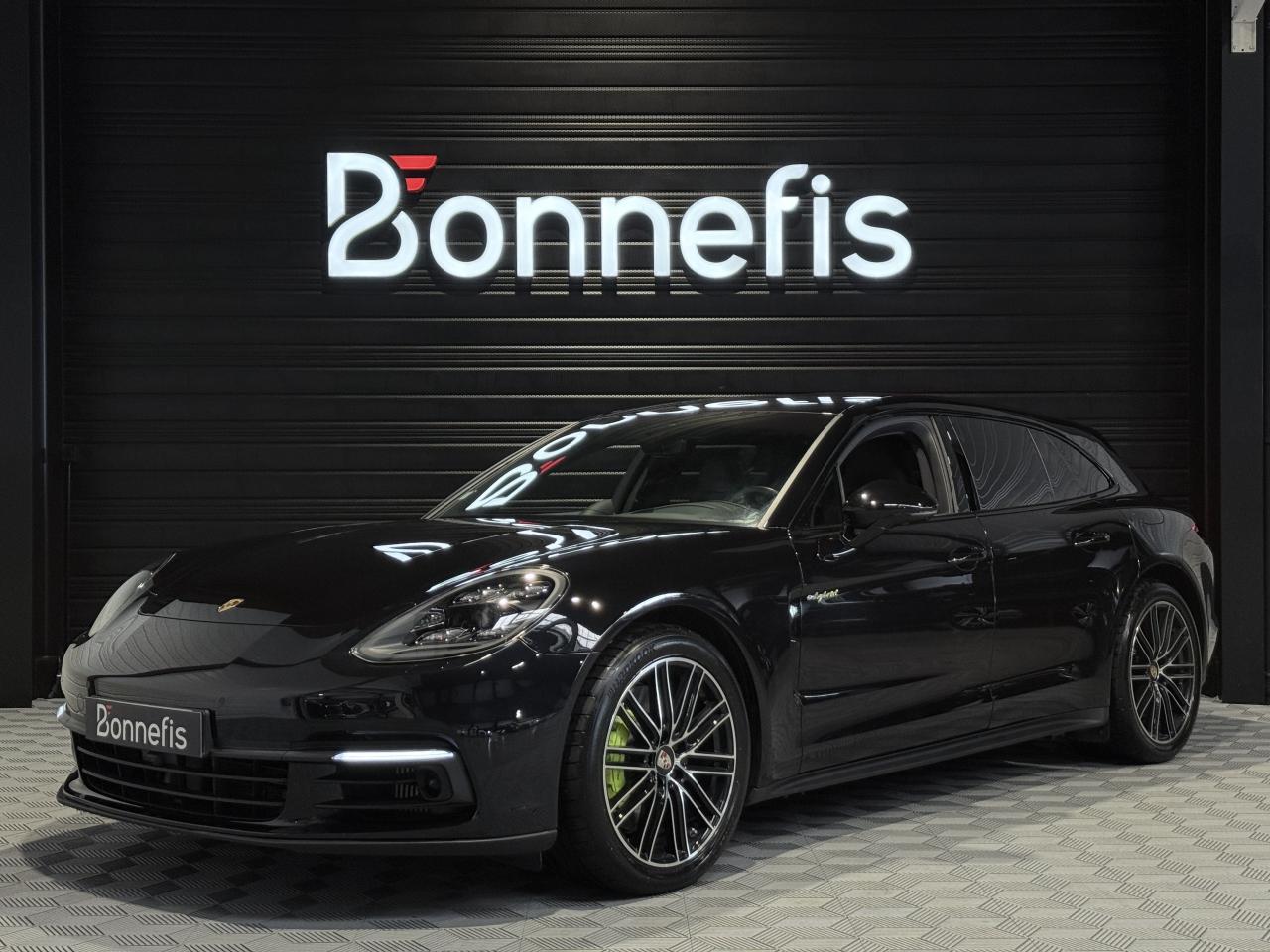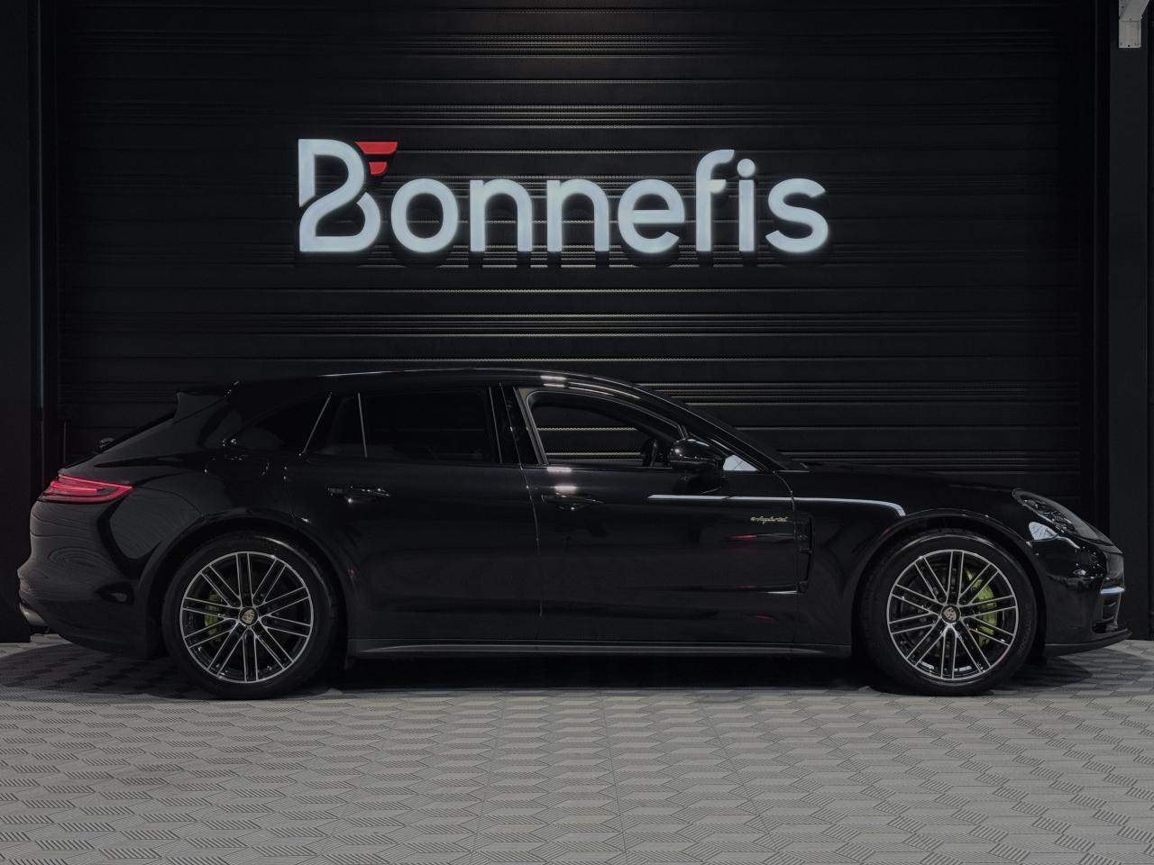 Porsche Panamera Sport Turismo E-HYBRID 2.9 V6 462Ch BVA Tiptronic, extérieur noir intense métallisée ( 1 250 € ), intérieur cuir noir ( 3 590 € ), 19 cv, 5 portes, première mise en circulation le 25/11/2019.