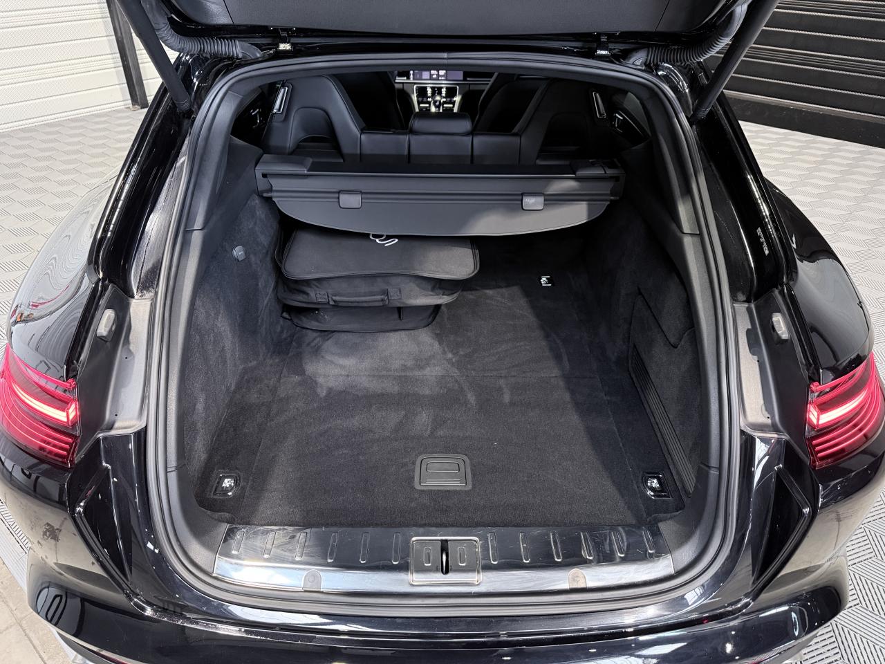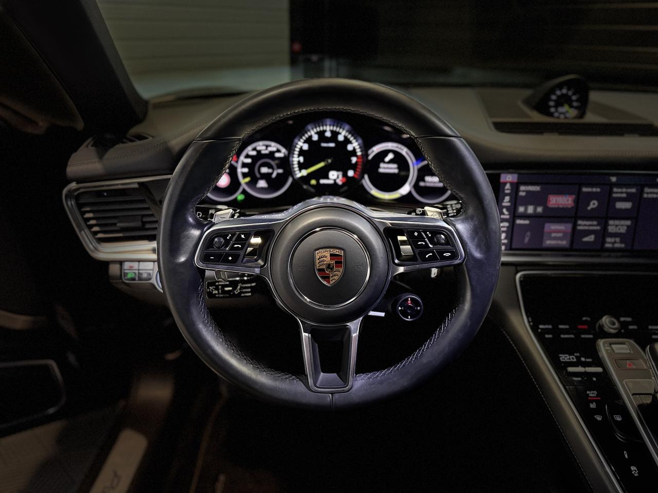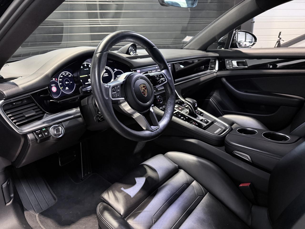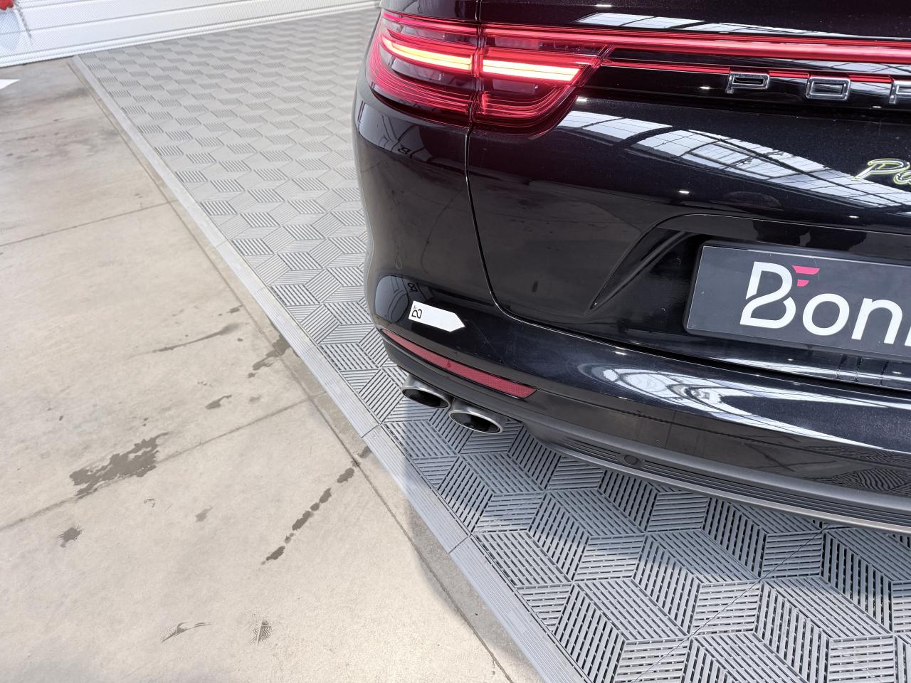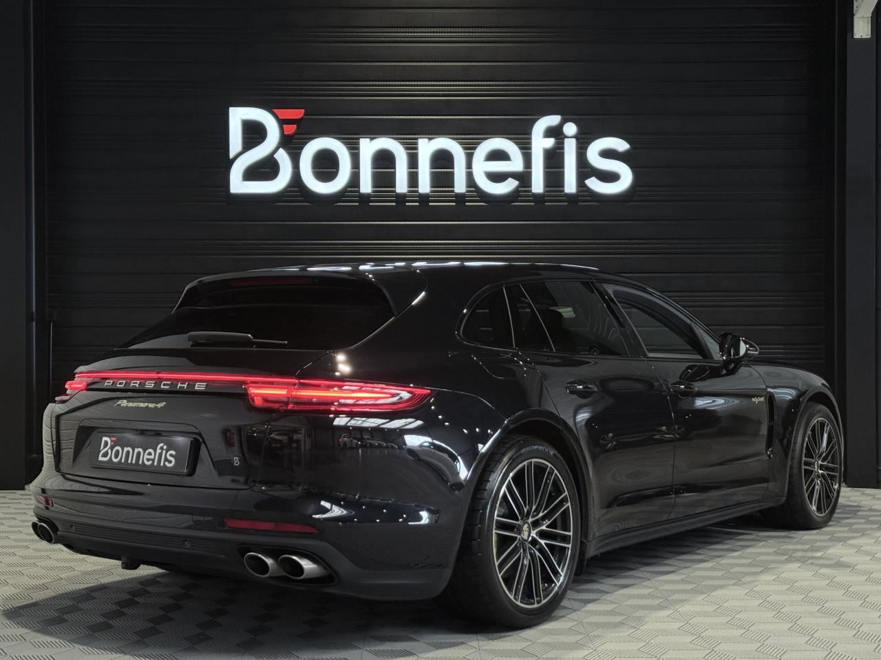 Porsche Panamera Sport Turismo E-HYBRID 2.9 V6 462Ch BVA Tiptronic, extérieur noir intense métallisée ( 1 250 € ), intérieur cuir noir ( 3 590 € ), 19 cv, 5 portes, première mise en circulation le 25/11/2019.