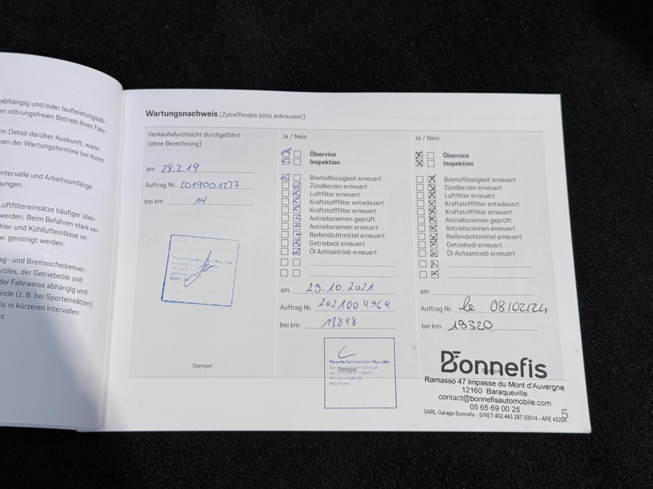 - 1er entretien fait le 29/10/2021 à 13 848Km chez Porsche. ( Vidange moteur + liquide de frein )
