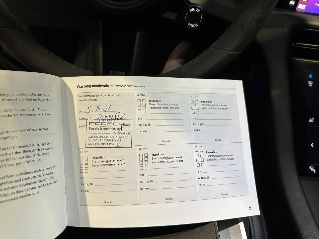 - 1er entretien fait le 05/10/2021 chez Porsche. ( Contrôle à la livraison )
