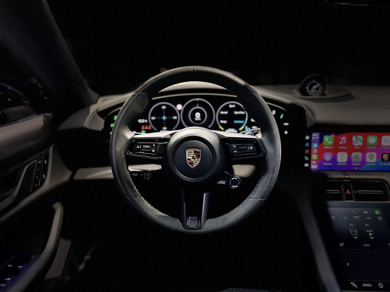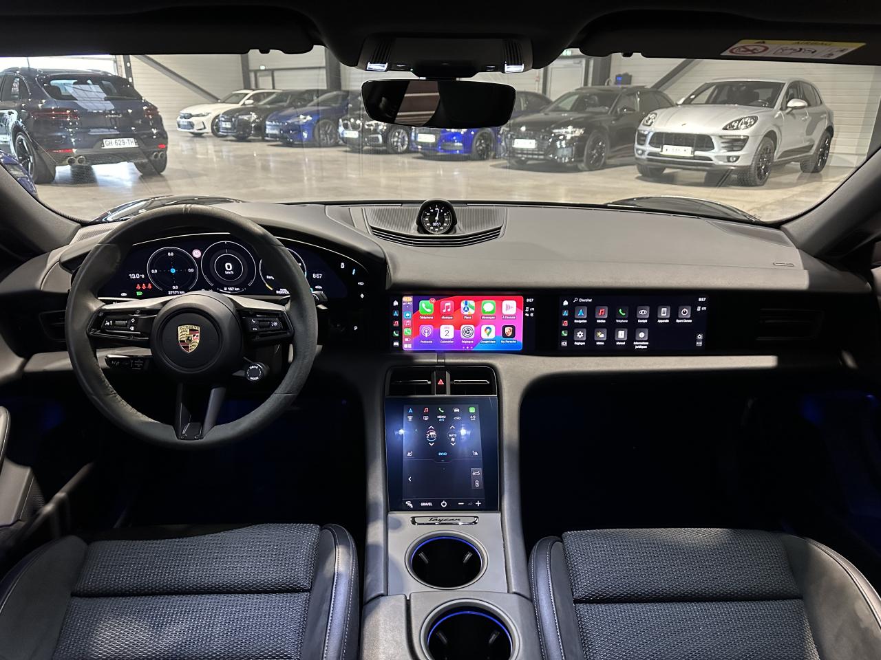 Nombreuses options : GPS, Apple Carplay, caméra 360° et radars avants et arrières de détection d'obstacles ( 1 430 € ), Porsche InnoDrive avec régulateur de vitesse adaptatif ( ACC / Active Cruise Control ) ( 3 100 € ), Phares matriciels à LED teintés avec PORSCHE DYNAMIC LIGHT SYSTEM PLUS ( PDLS+ ) ( 2 210 € ), Jantes Taycan Turbo S Aero Design 20 pouces ( 2 170 € ), Sièges sports adaptatifs à l'avant (18 positions, électriques) avec pack mémoire ( 2 050 € ), Toit panoramique fixe ( 1 620 € ), Affichage tête-haute ( 1 610 € ), BOSE Surround Sound-System ( 1 360 € ), Pack Chrono Sport ( 1 130 € ), Accès confort ( 1 100 € ), Écran passager ( 1 030 € ), Sièges chauffants à l'avant et à l'arrière ( 880 € ), Advanced Climate Control (climatisation 4-zones) ( 830 € ), Pompe à chaleur ( 780 € ), Assistant changement de voie ( 780 € ), Trappe de recharge électrique ( 630 € ), Vitrage arrière fumé ( 500 € ), PORSCHE Electric Sport Sound ( 500 € ), 4+1 sièges ( 480 € ), Éclairage d’ambiance ( 430 € ), Rétroviseurs extérieurs et intérieur avec fonction anti-éblouissement automatique ( 420 € ), Contour des vitres latérales en noir (finition brillante) ( 350 € ), Câble de recharge type 2 (mode 3) ( 300 € ), Rétroviseurs extérieurs rabattables électriquement avec éclairage d’alentours ( 300 € ), Projecteurs de porte à LED avec signature "Porsche" ( 290 € ), PORSCHE Intelligent Range Manager ( PIRM ) ( 290 € ), SERVOTRONIC Plus : direction assistée asservie à la vitesse ( 290 € ), HomeLink® (système d'ouverture de porte de garage) ( 290 € ), Volant chauffant ( 270 € ), Pare-brise teinté dégradé ( 110 € ), Porsche Mobile Charger Connect, Double transmission avant/arrière, Suppression du monogramme arrière....