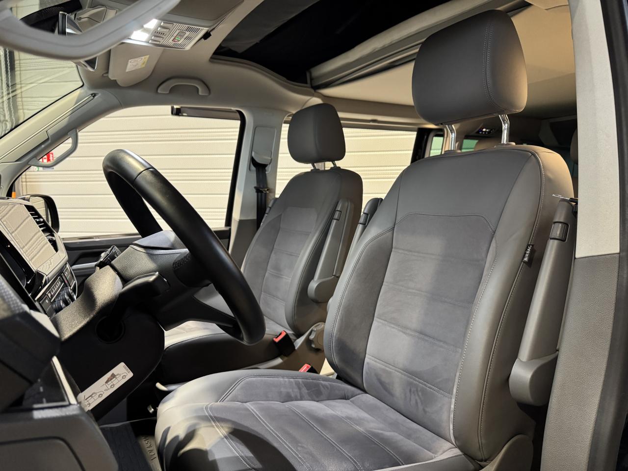 Nombreuses options : GPS, caméra de recul, AppleCarplay, radars avants et arrières de détection d'obstacles, Bandes centrales de siège en microfibre "ArtVelours", bourrelets latéraux de maintien du siège en style cuir ( 1 133 € ), Jantes en alliage léger Woodstock 7J x 17 en noir, surface tournée brillante ( 1 125 € ), Dispositif d'attelage, amovible/fermant à clé (y compris système de stabilisation de remorque) ( 566 € ), Store avec boîtier et rails noirs ( 520 € ), Revêtement de plancher dans le compartiment passagers en style bois ( 479 € ), Assistant de changement de voie "Side Assist" ( 387 € ), Système d'alarme antivol avec protection volumétrique dans la cabine, Back-up Horn et protection anti-soulèvement ( 300 € ), Rallonge de lit avec matelas confort ( 283 € ), Régulation des feux de route "Light Assist" ( 141 € ), Trousse de secours et triangle de pré-signalisation et veste de signalisation ( 33 € ), 1er Remplissage en carburant plus élevé (14 Litres) ( 16 € ), Alimentation 230 V avec fonction de charge pour batteries de véhicule ainsi que prise 230 V dans l’habitacle, Armoire en placage "Graphite Grey" avec raccord pour douche extérieure, Blocs de feux AR à LED, Rouge, Chauffage des sièges de la cabine, à gauche et à droite réglables séparément, Chauffage stationnaire à air, programmable, avec radiocommande et réchauffeur additionnel, Digital Cockpit et détecteur de fatigue, Gicleurs dégivrants à l'AV et indicateur de niveau du liquide de lave-glace, Hayon avec baie de fenêtre et aide à la fermeture, Régulateur automatique de distance ( ACC / Active Cruise Control ) jusqu'à 210 km/h et système de surveillance périmétrique "Front Assist" avec fonction freinage d'urgence en ville, Rétroviseurs extérieurs dégivrants, réglables et rabattables électriquement, y compris fonction rabattement via clé du véhicule, Système de navigation "Discover Media Pro" y compris "Streaming & Internet", Système de plafonniers Camper avec éclairage dans toit relevable, hayon et sur placard cuisine, Toit relevable électro-hydraulique avec 3 fenêtres et une ouverture AV, soufflet en Basalt Grey, Verrouillage centralisé avec radiocommande, commande intérieure et SAFELOCK....