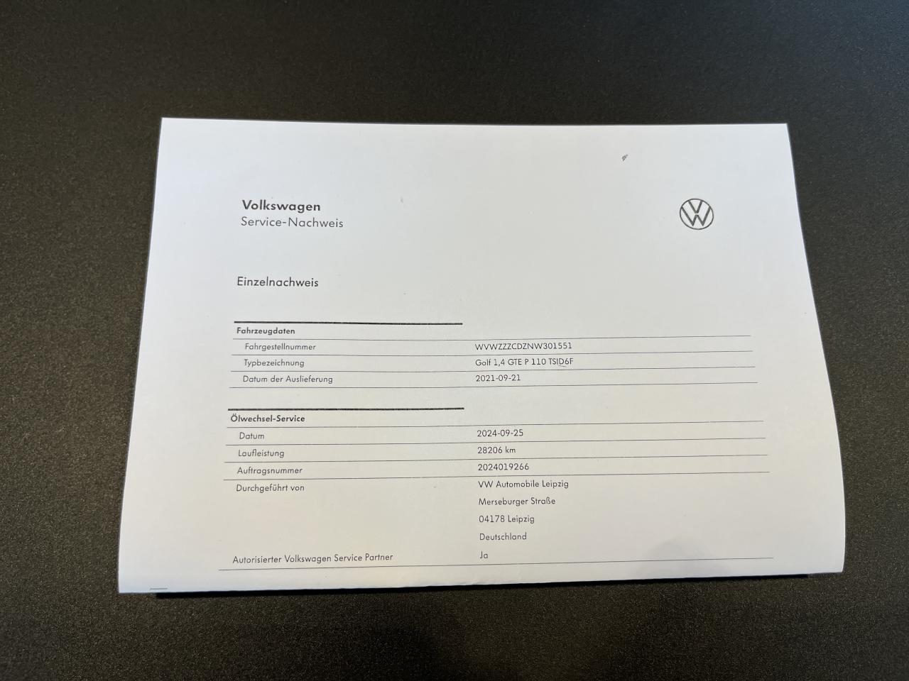 Justificatif d'entretien VW disponible :