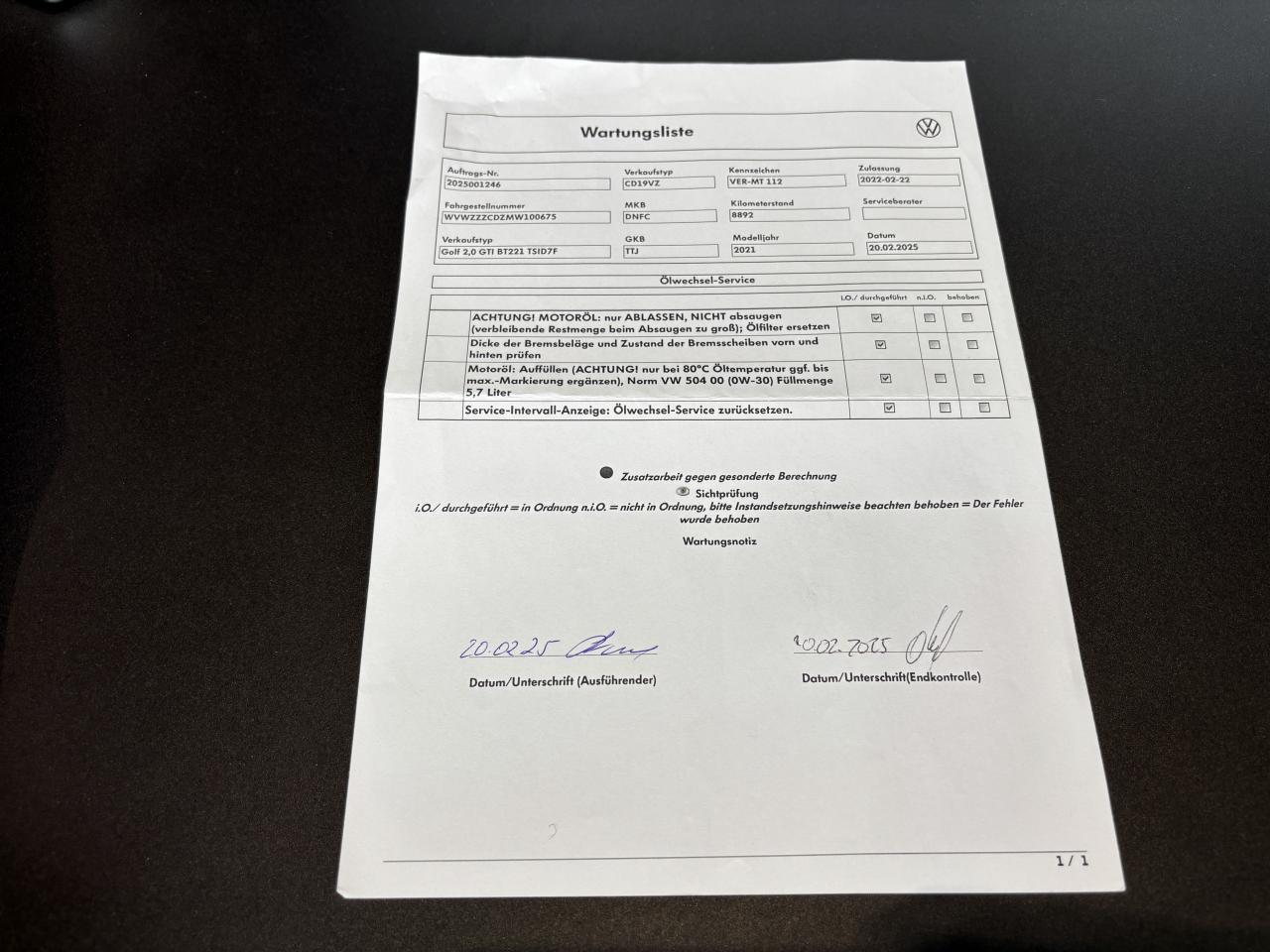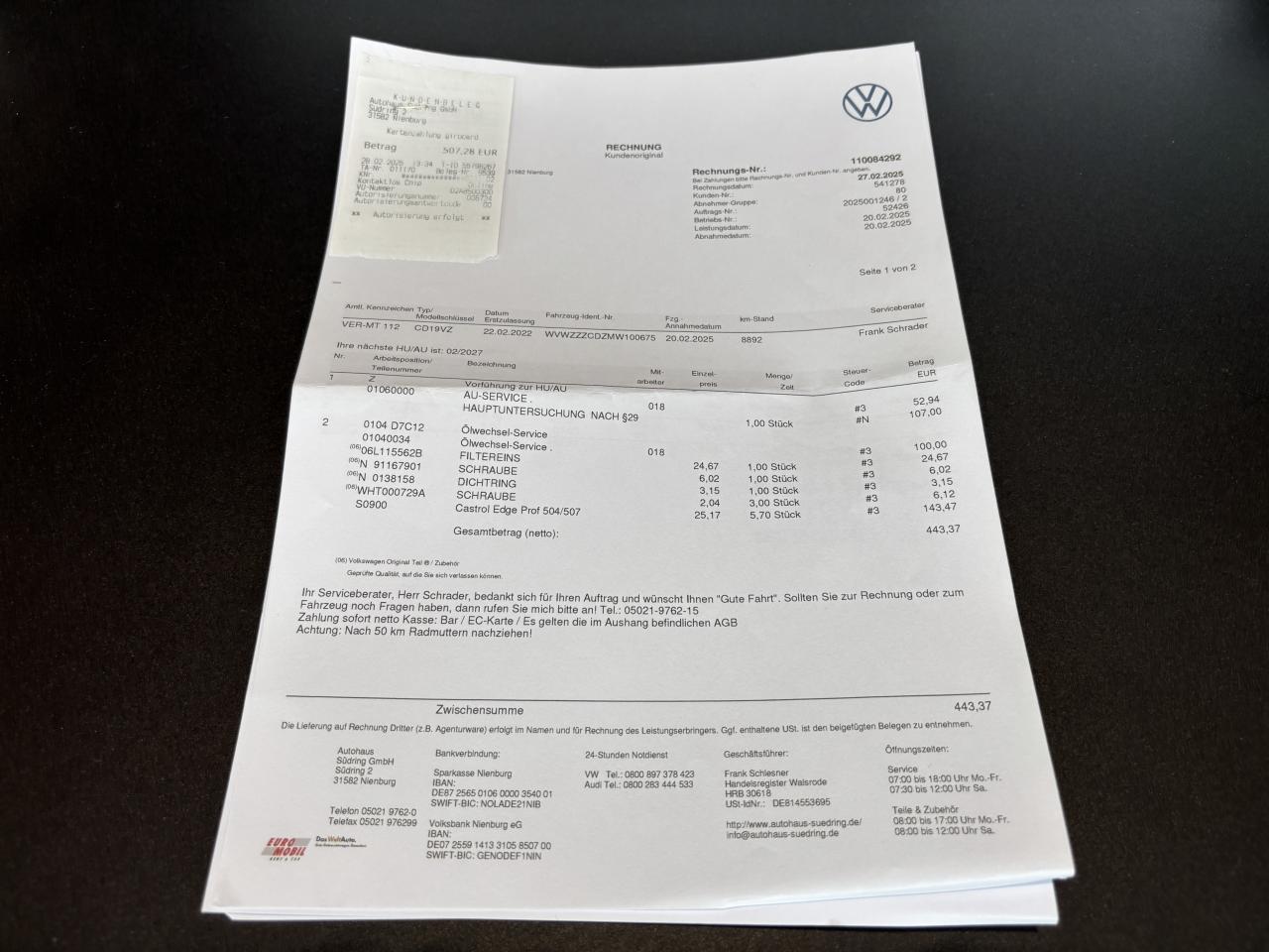 - 3ème entretien fait le 21/02/2025 à 8 892Km chez VW. ( Vidange moteur )
