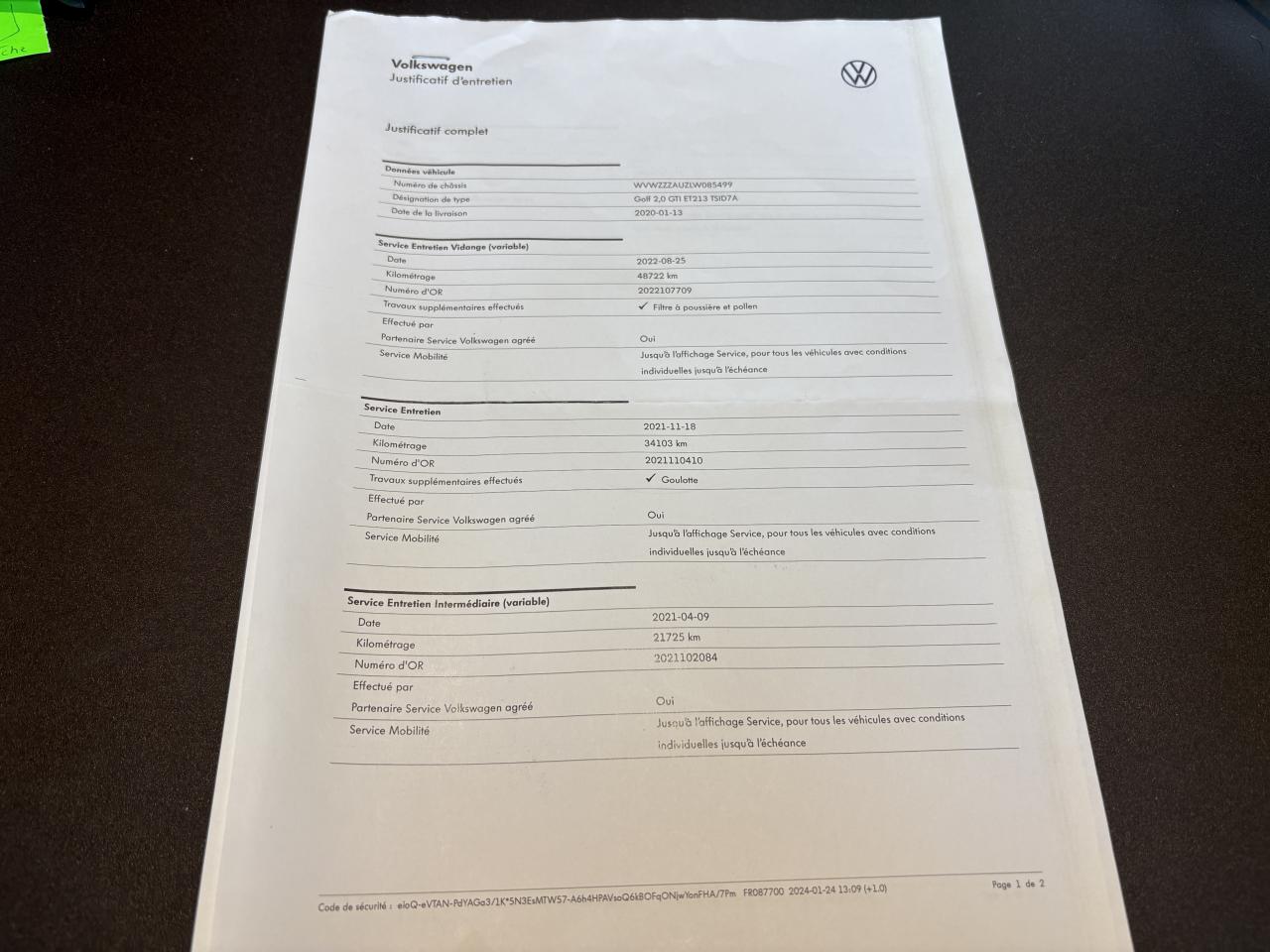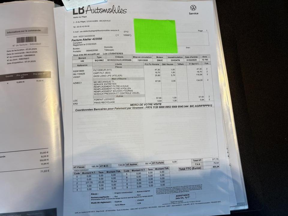 - 4ème entretien fait le 01/02/2025 à 72 793Km chez VW Rodez. ( Vidange moteur + bougies )