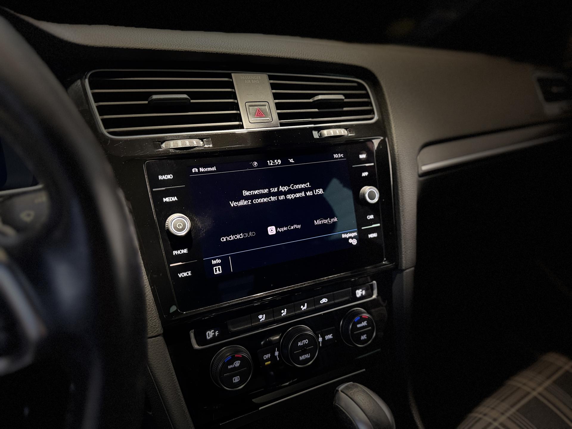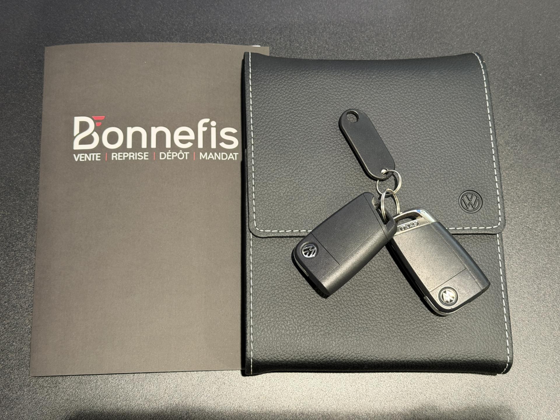 Nombreuses options : GPS, caméra de recul, Apple CarPlay, radars avants et arrières de détection d'obstacles, ACC ( Active Cruise Controll, régulateur de vitesse adaptatif ), roue de secours 18" à encombrement réduit avec cric ( 63 € ), accoudoir central AV avec compartiment de rangement, 2 porte-gobelets intégrés et 2 bouches d'aération derrière l'accoudoir pour les passagers AR, Active Info Display : combiné d'instruments entièrement digital haute résolution couleur, allumage automatique des feux avec fonctions "Coming Home - Leaving Home", amortisseurs sport AV/AR, capteur de pluie avec essuie-glace automatique, Car-Net "App-Connect" en combinaison avec Discover Media, étriers de frein rouge à l'AV et à l'AR, jantes en alliage léger 18" "Sevilla" par Volkswagen R, rétroviseur intérieur jour/nuit automatique, rétroviseurs extérieurs rabattables électriquement, sellerie spécifique tissu Clark, système Navigation & Infotainment "Discover Media", vitres AR et lunette AR surteintées à 65 %, ...