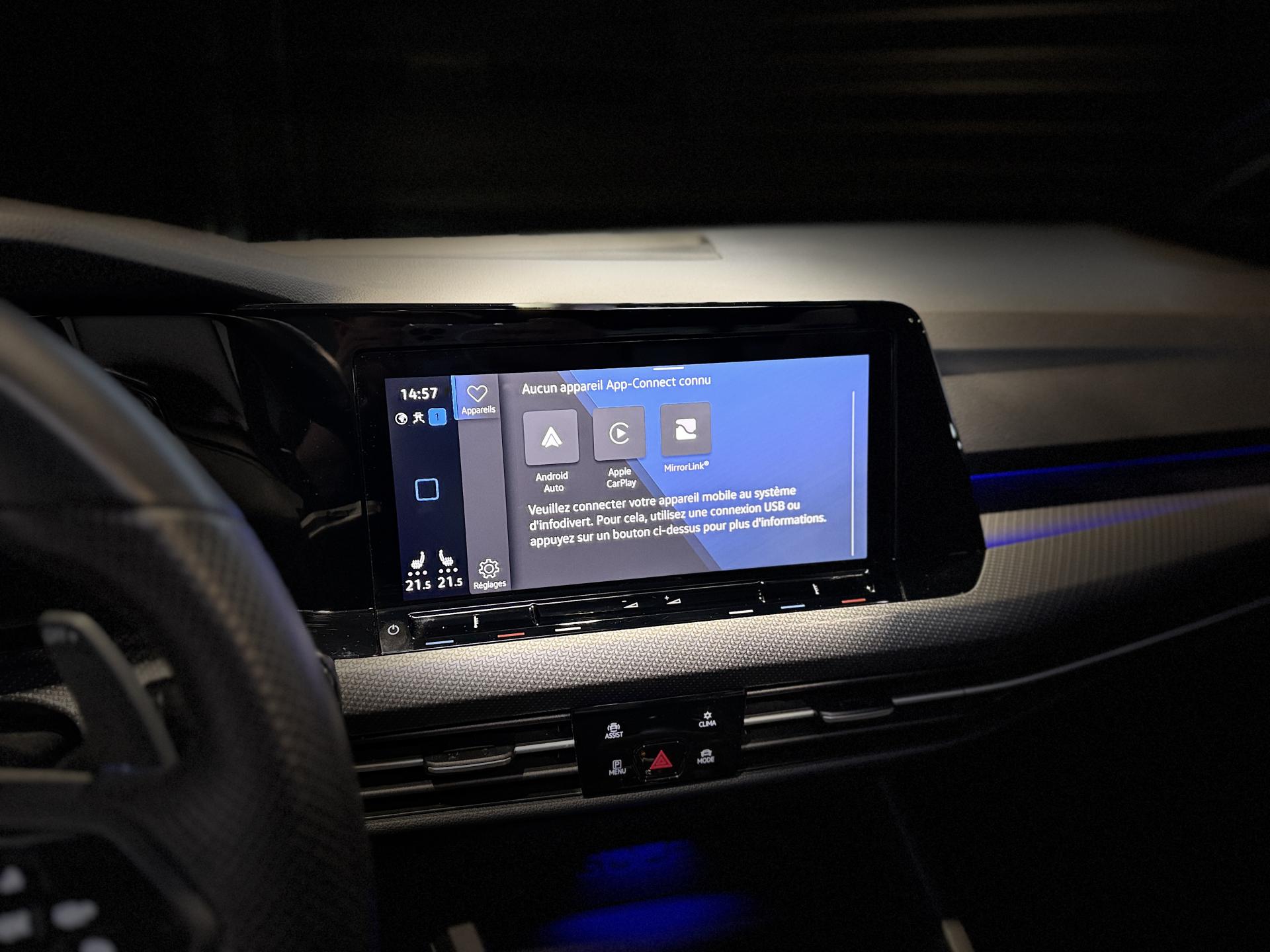VOLKSWAGEN GOLF VIII R 2.0 TSI 320Ch BVA DSG7 Akrapovic, extérieur Noir ( Noir Intense ) ( 591 EUR ), intérieur Noir, 20 cv, 5 portes, première mise en circulation le 13/12/2021.